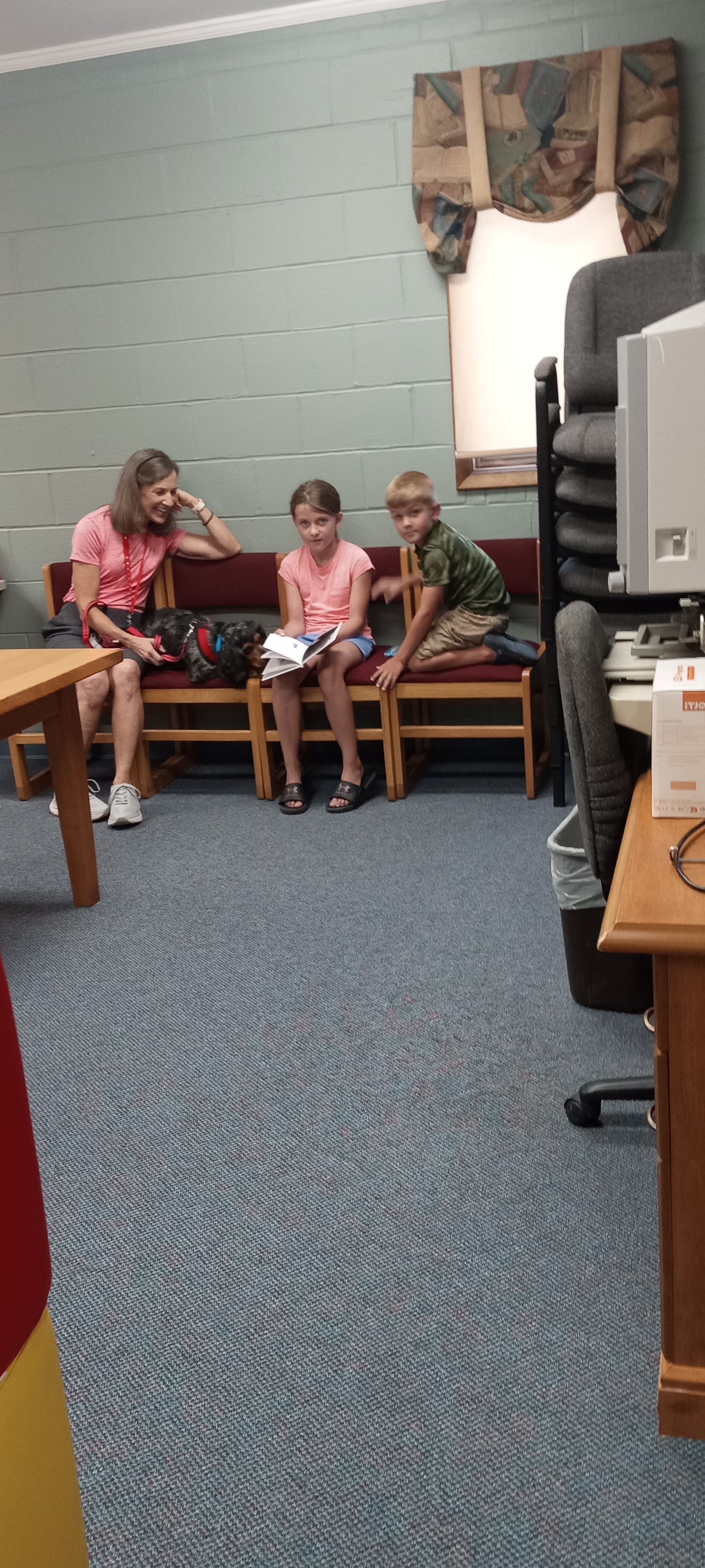 Our favorite library pup, Grace, has had a full house of readers the past couple of weeks! (And treats hidden all over the library for hot/cold searching.) Two more weeks of reading to Grace before summer reading is over! Thanks DonnaLou for bringing Grace to the library and letting her listen to the kids read this summer! Grace days are some of our favorite days!