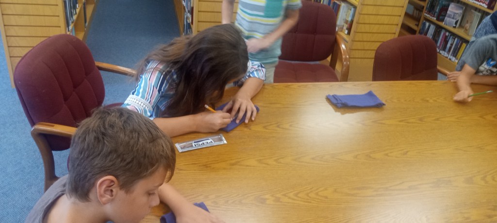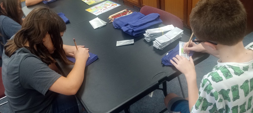 Thanks to Katie @ Ecology Action Center for joining us today with Aluminum Can Adventures! Participants were able to emboss aluminum cans and practiced sorting items into Recycling or Garbage containers! A fun and unique way to recycle aluminum cans and make bookmarks!