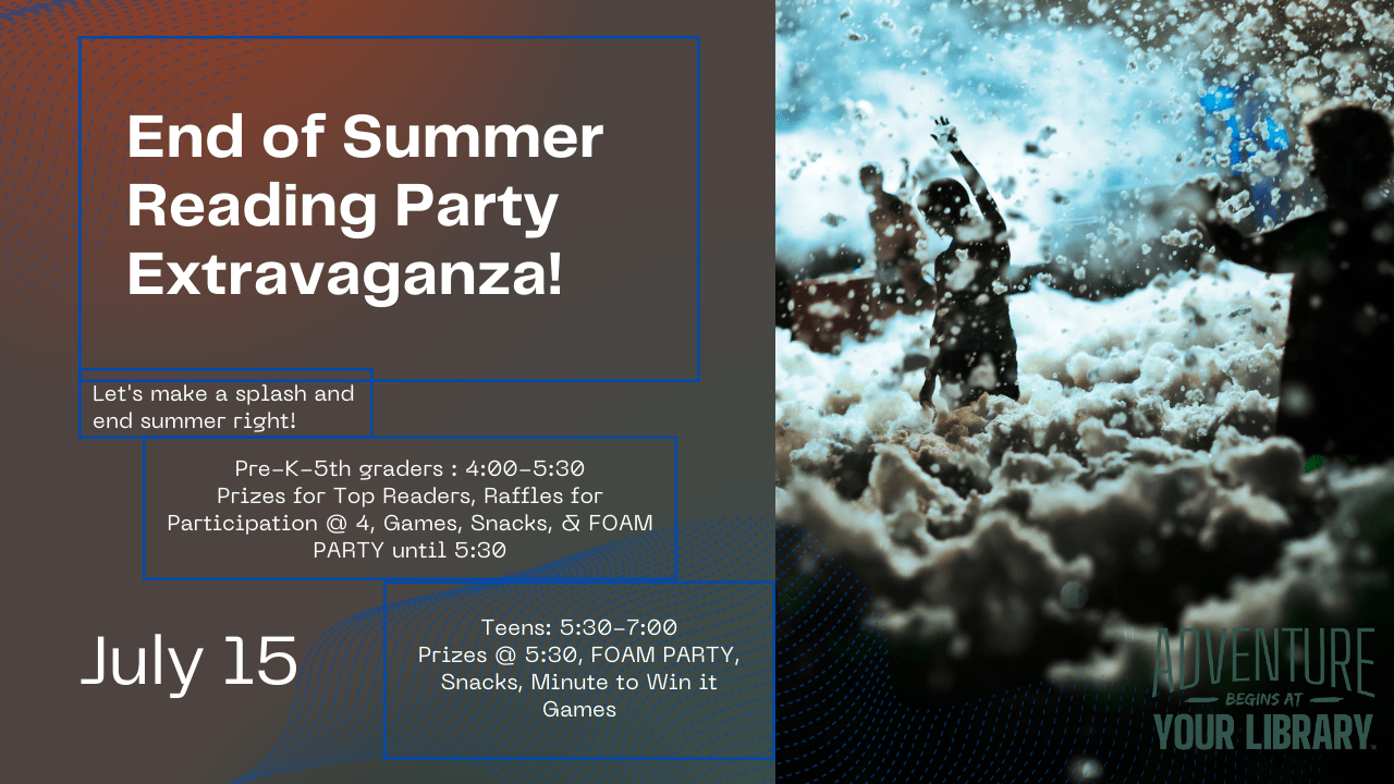 Stop in the library to pick up a coloring contest page! Bring them back to the library and we’ll put them on display for the remainder of summer reading! (Prizes will be awarded at the End of Summer Reading Party!)
