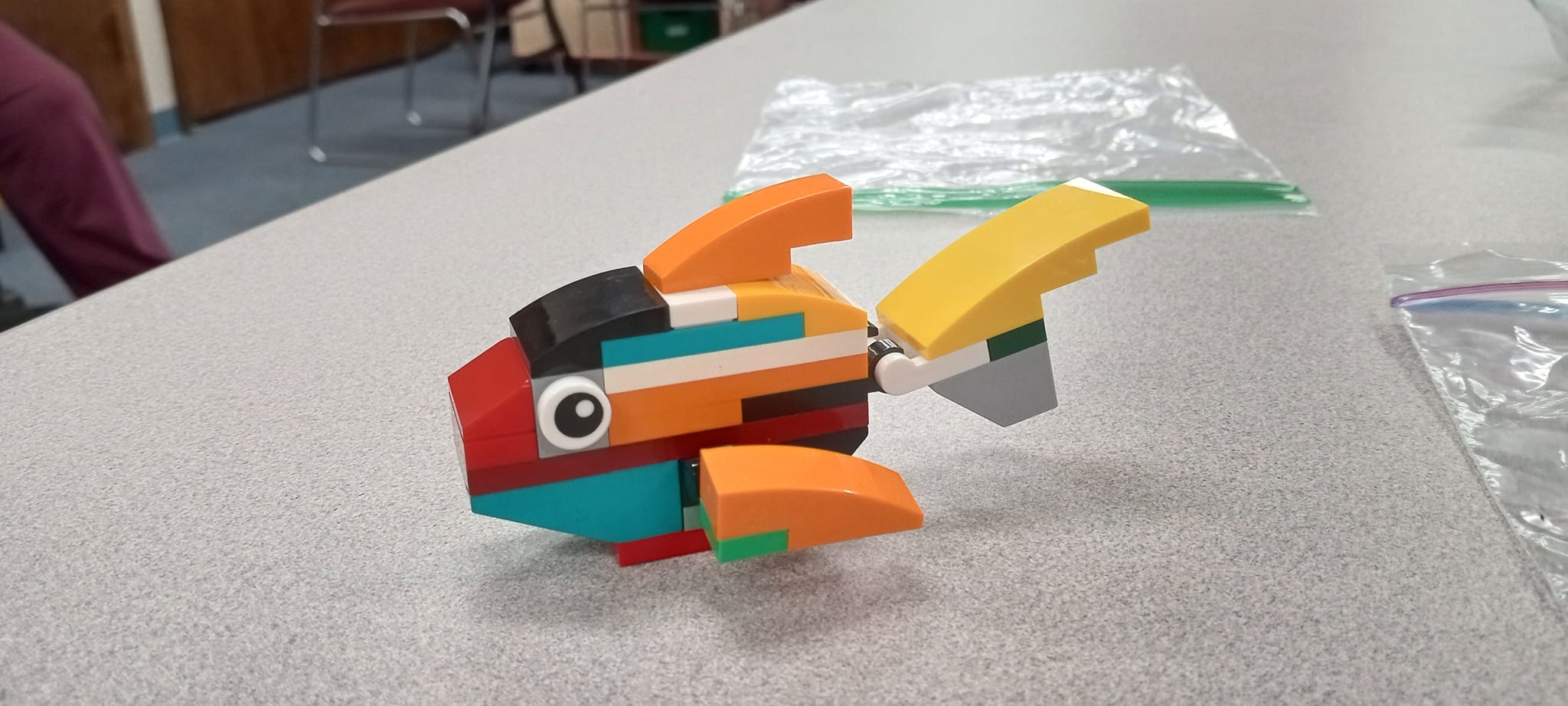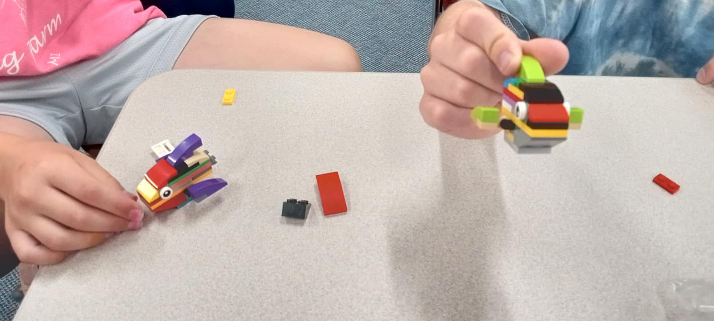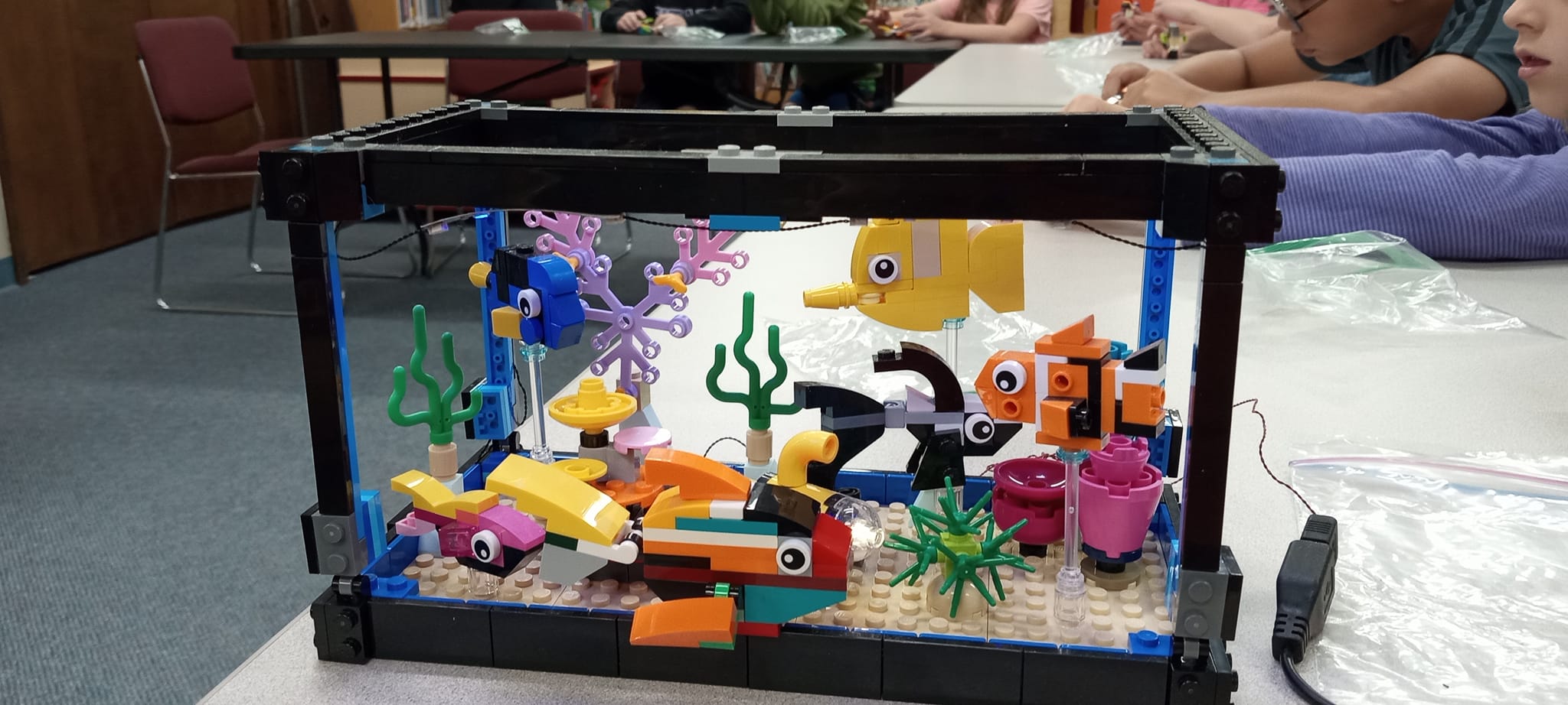 This morning was a flurry of activity! Signing kids up for Summer Reading, the Lego Lady, Ms. April, building colorful fishys with us in class this morning, Legos on display, and more! #legolady #summerreadingprogram #alltogethernow