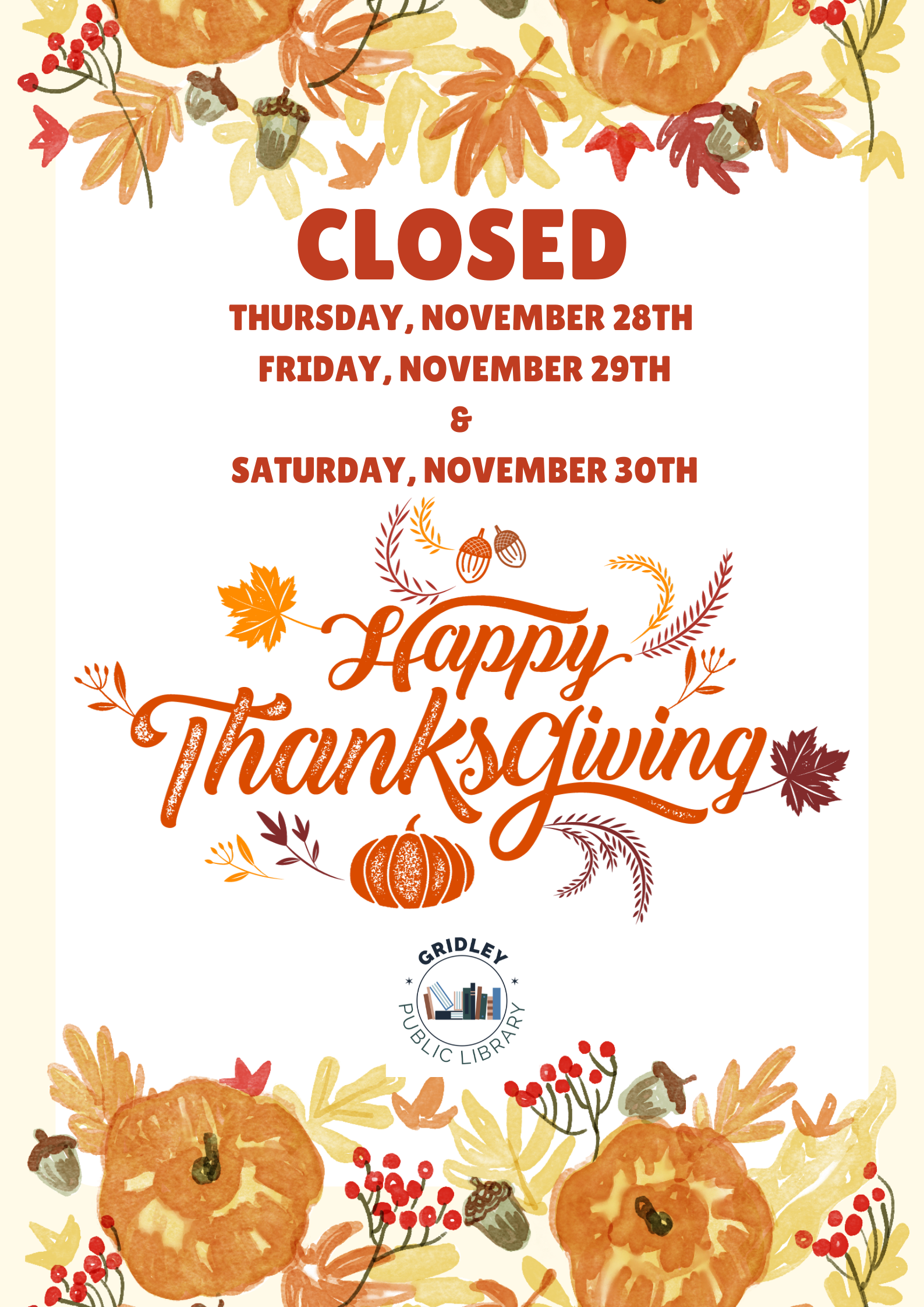 Thanksgiving Closure