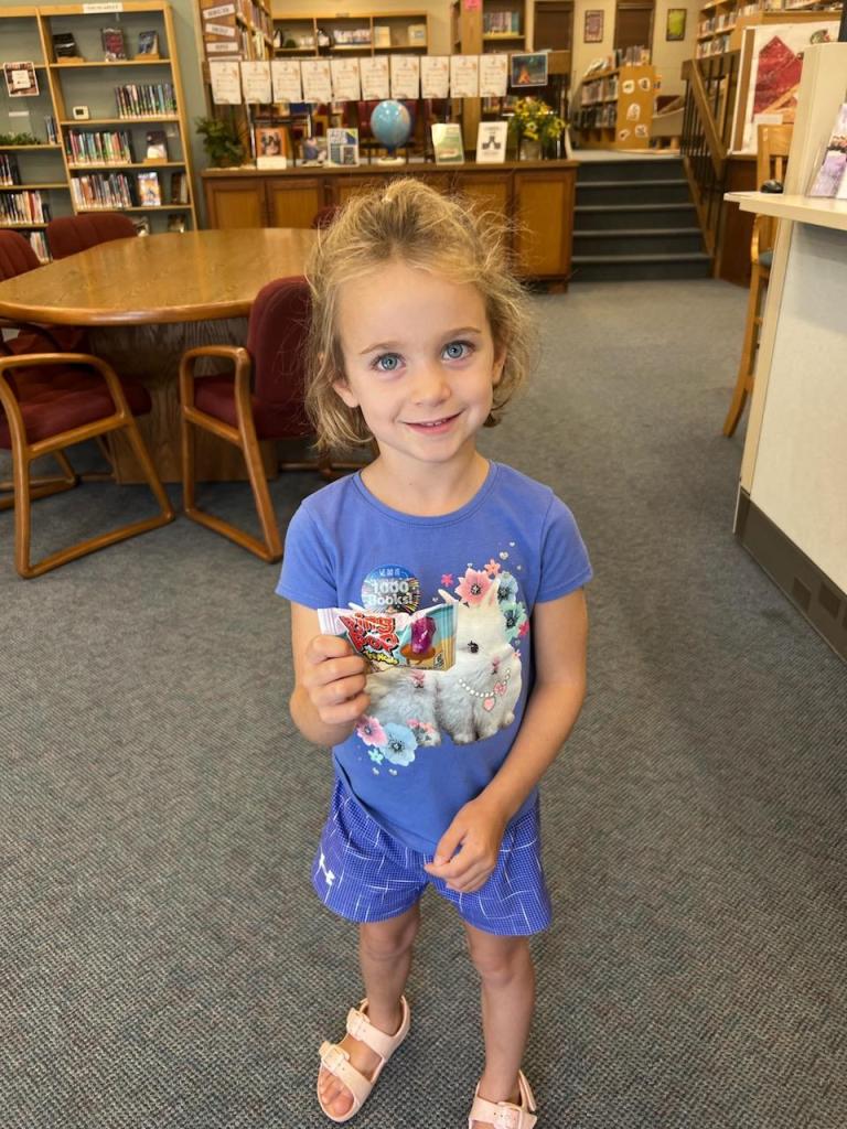 Congratulations to Reagan Stoller for completing the 1000 Books before Kindergarten challenge! She is our first participant to complete the Challenge! And she did it in the nick of time! Kindergarten starts tomorrow!